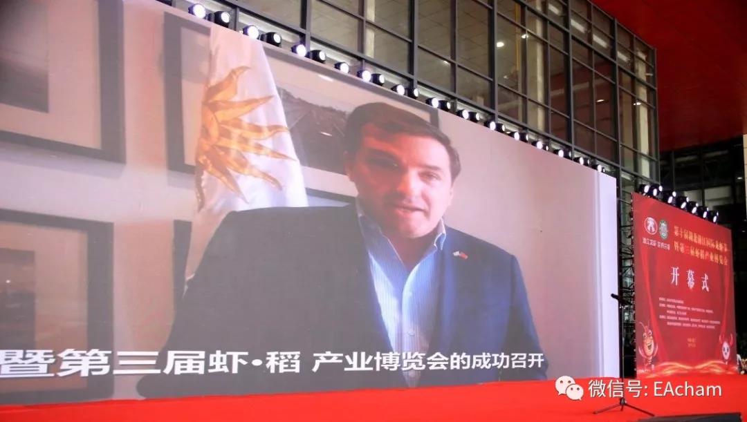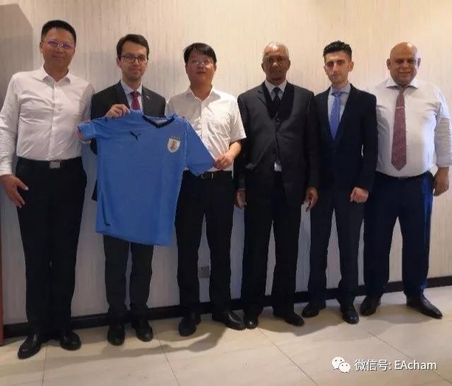 Después de la Ceremonia de Apertura, el alcalde Gong se reunió con EAcham y sostuvo conversaciones cordiales y amistosas con el consejero de Guinea y la Embajada de Uruguay. El alcalde Gong dijo que Qianjiang es el centro de Hubei y Hubei se encuentra en el centro de China. Qianjiang Norte está delimitada por Hanshui y al sur del río Yangtze. La posición geográfica es superior. La exportación de cangrejos de río es la primera en el país durante 14 años consecutivos. Se espera que pueda cooperar con varios países como Uruguay en diversas industrias, incluida la cooperación de la industria del fútbol.