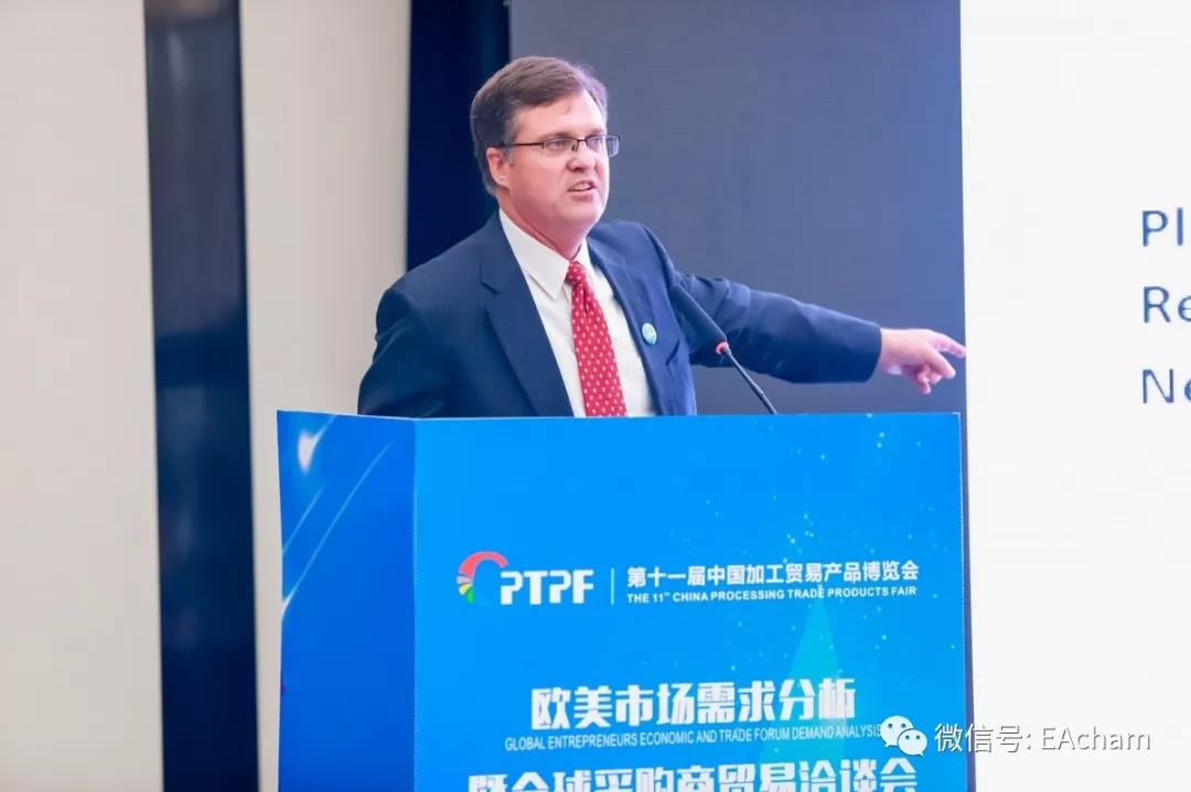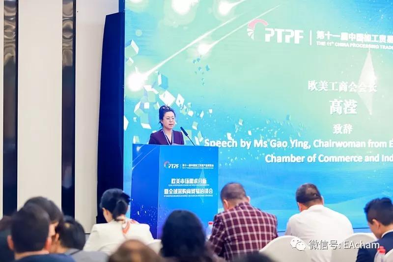 Chairwomen of European American Chamber of Commerce & Industry, Ms. Gao Ying proposed a new mission “Boost Manufacturing, Accelerate Export” for first time with the processing trade industry growth.