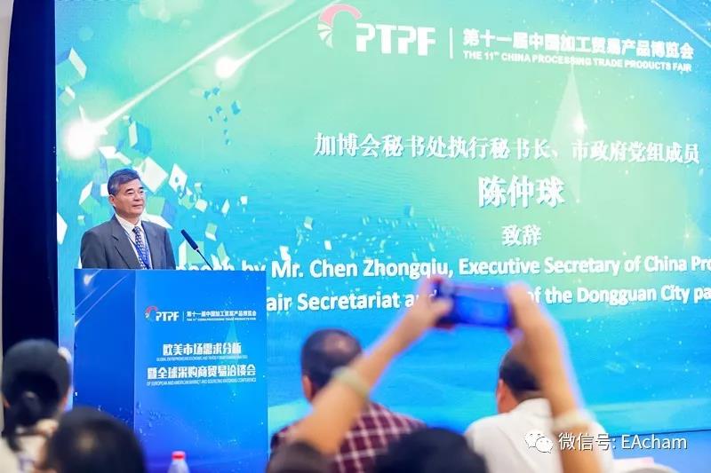 The 11th China Processing Trade Fair grandly took place on April 18 in Guangdong Modern International Exhibition Center. This four-day event is jointly hosted by the Ministry of Commerce of the PRC, the State Intellectual Property Office and the People’s Government of Guangdong Province, as well as co-organized by the Department of Commerce of Guangdong Province, Government of Dongguan City and European American Chamber of Commerce.