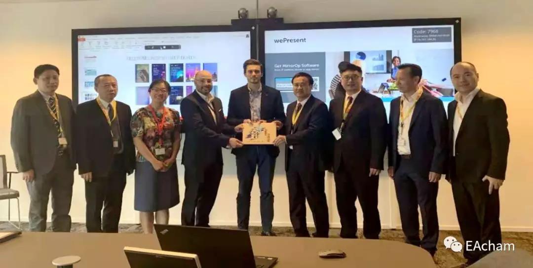On July 11, Belgian local time, visiting delegation of Shantou Municipal People's Government visited the headquarters of European and American Chambers of Commerce and Industry (EAchamin Brussels, Belgium. Ms. Huang Weihua, principal of Headquarters Affairs of EAcham, received cordially the delegation, headed by Mr. Chen, Deputy Secretary-General of Shantou Municipal People's Government. Both sides held a fruitful meeting in the office of Eacham.